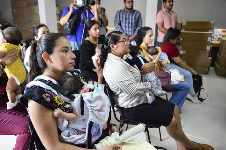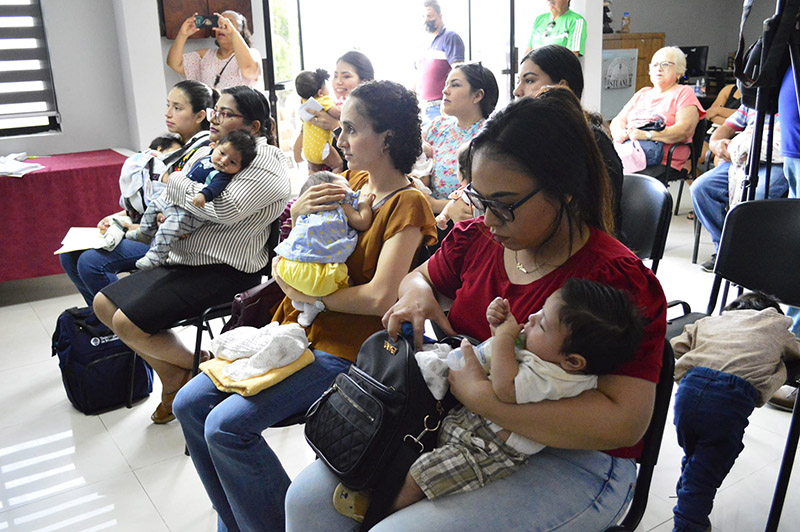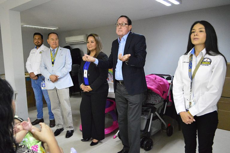 El biól. Rafael Garza Ibarra y funcionarios sindicales de la Comisión de Servicios Médicos y de la Secretaría de Previsión, entregaron este cinco de junio las canastas maternales a las madres trabajadoras que recientemente tuvieron a sus hijos.